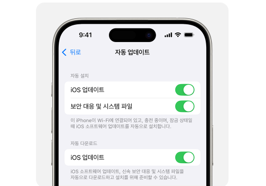 정기적 소프트웨어 업데이트 | 최신 iOS 업데이트로 통신사 설정과 보안 패치를 적용합니다. |