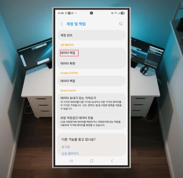 - 삼성 클라우드 : 설정 앱 → 계정 및 백업 → 데이터 백업 → 원하는 항목 선택 및 백업