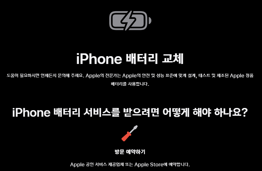 또한 애플케어플러스에 가입했다면 2년 보증 기간 동안 성능이 80% 미만일 때 아이폰 배터리 교체 비용 없이 무상 서비스를 받을 수 있습니다.
