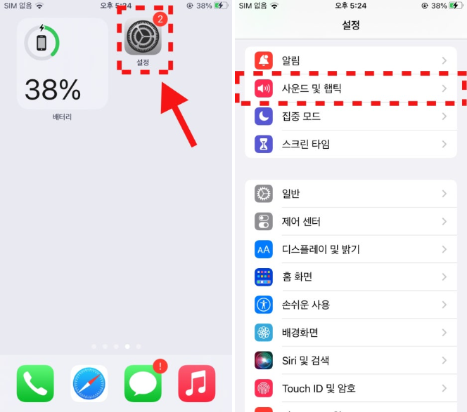 홈 화면에서 설정 앱을 열고 ‘사운드 및 햅틱’ 메뉴로 들어가세요.