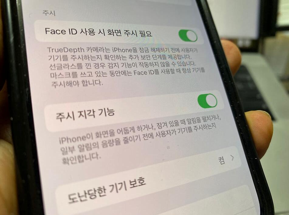 이는 아이폰 X 이상 모델에 탑재된 ‘주시 지각 기능’ 때문입니다.